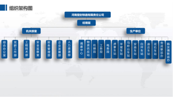 河南登封鐵路有限責任公司負責登封鐵路的運輸及運營,登封鐵路全長90.215公里,途經(jīng)平頂山、洛陽、鄭州、許昌四個地市,于1995年12月開工建設,2003年開通運輸。目前開辦運輸業(yè)務和承擔直通分流任務,共擁有鐵路大型貨場11座,貨位460個。